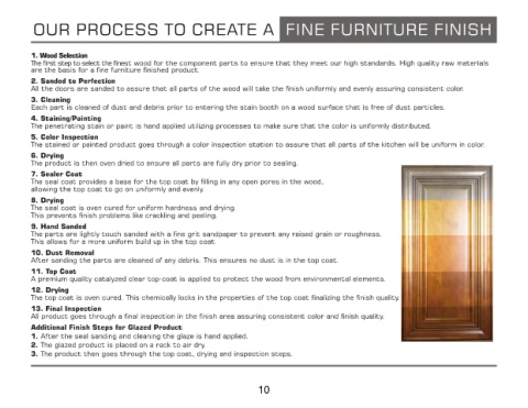 All the doors are sanded to assure that all parts of the wood will take the nish uniformly and evenly assuring consistent color.