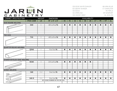 CABINET SPECIFICATION  BASE BOARD MOLDING  TOE KICK  QUARTER ROUND MOLDING  SHAKER BEVELED EDGE MOLDING  SCRIBE MOLDING  SM8  SM8-B