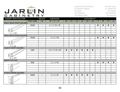 CABINET SPECIFICATION SINGLE BEAD INSERT MOLDING TRIPLE BEAD INSERT MOLDING SHAKER INSERT MOLDING MIRROR MOLDING SHAKER MIRROR MOLDING